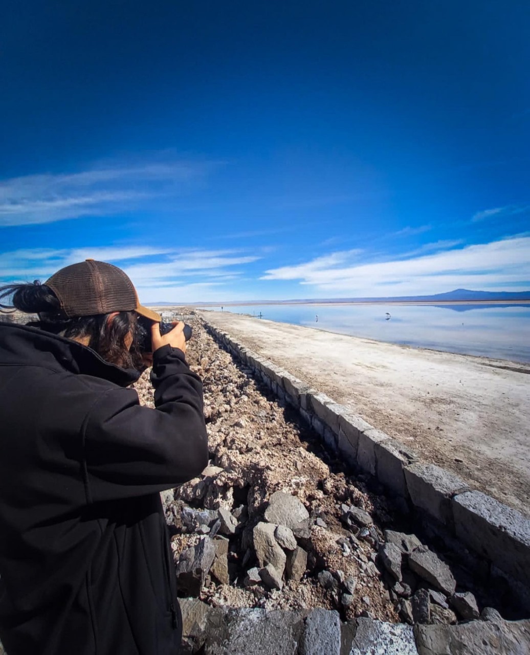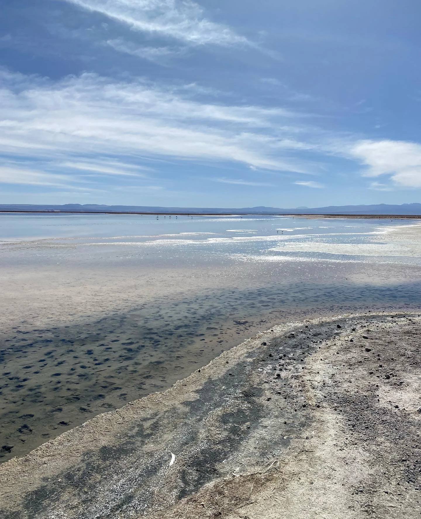 «Al día siguiente los llevé a la Laguna Chaxa, dentro del Salar de Atacama. Caminamos por los senderos rodeados de sal cristalizada hasta llegar a la laguna. Rodrigo no podía creerlo: un grupo de flamencos surcaba el cielo y se reflejaba en el agua como un espejo. Fue un instante de calma total, un contraste perfecto con el silencio inmenso del desierto.»